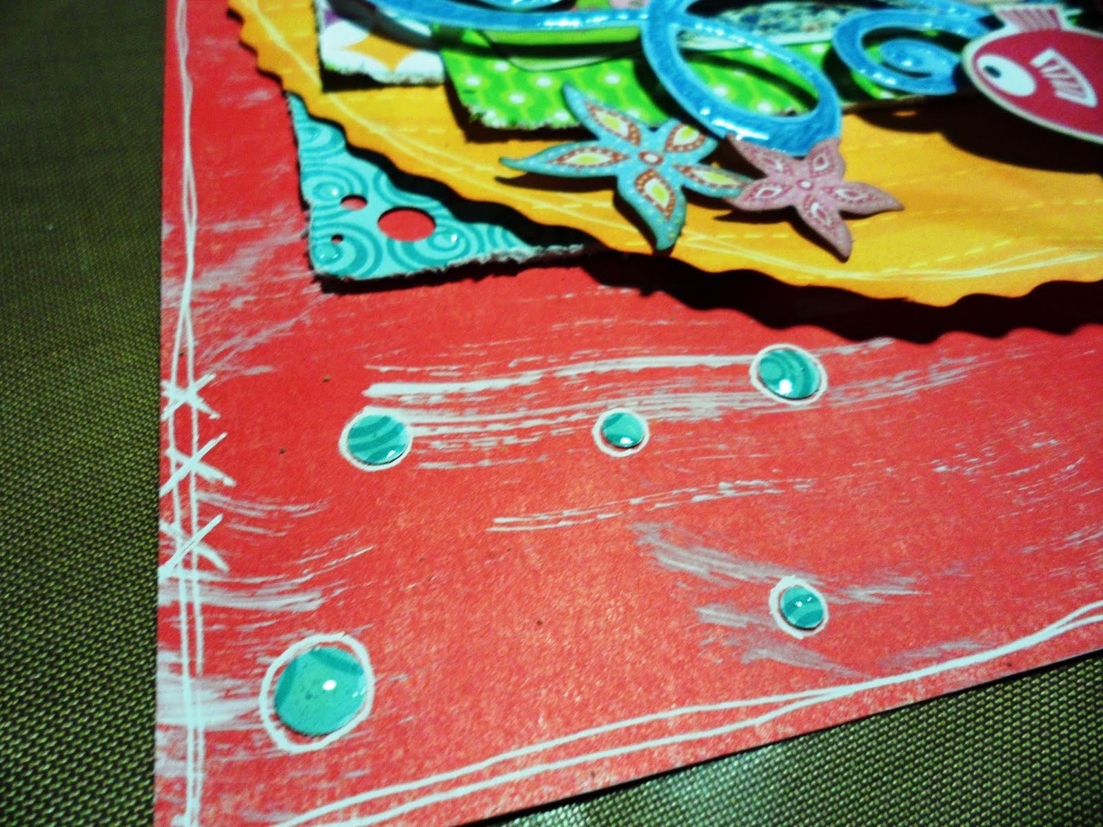 The next photos are not so good but you can see the glossy accents on the paper, bubbles and waves!
